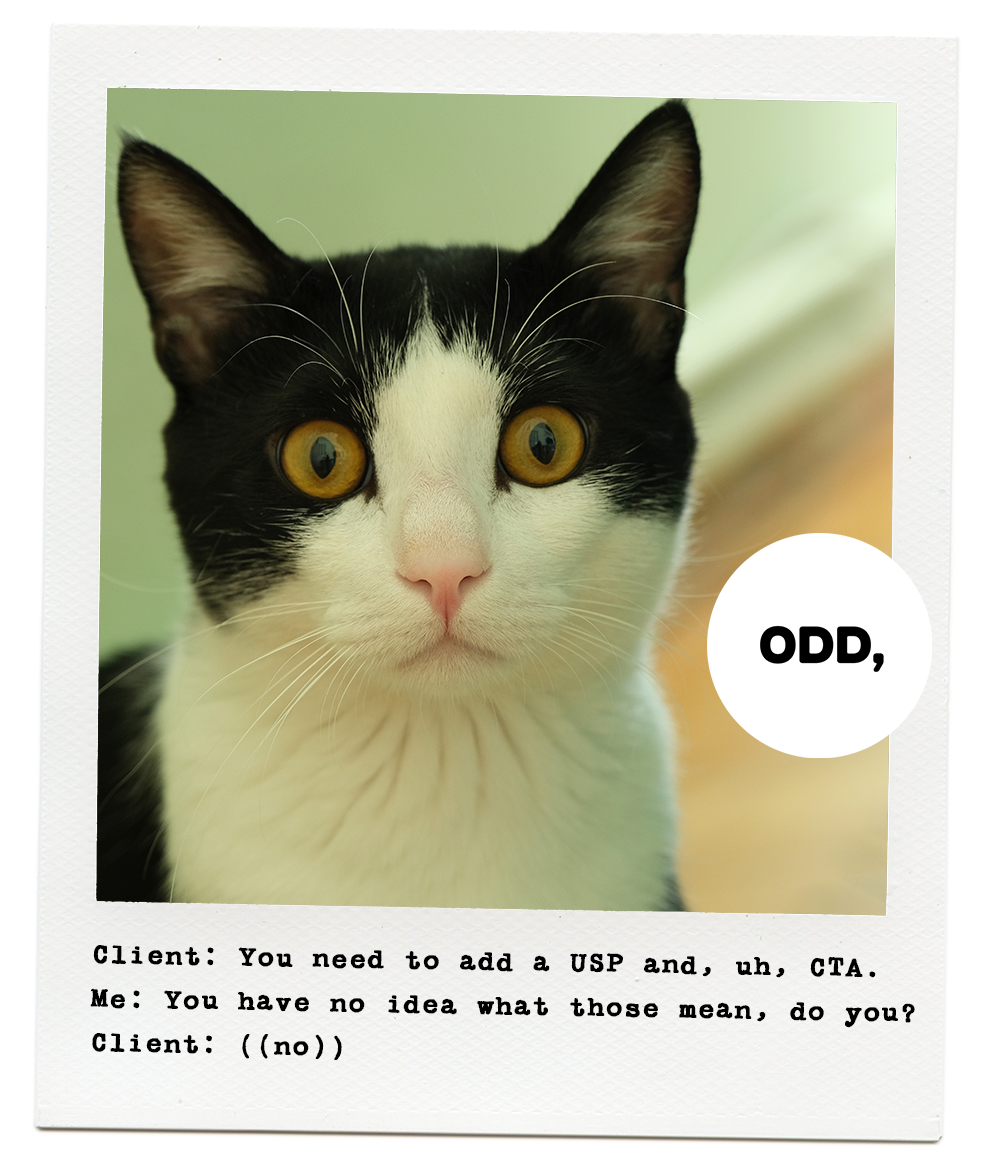 Uh-oh, the client met a marketing consultant at a digital lunch & learn. I'm experiencing an acronym surge over here.